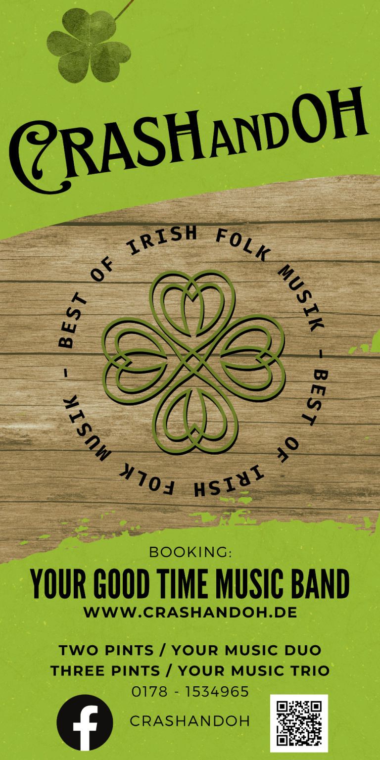 CRASHandOH ist seit 25 Jahren in der Irish-Folk-Szene fest verankert. Unsere Band bietet authentische irische Musik mit Leidenschaft und Hingabe. Irish-Folk für Bier, Bauch und Beine. Wir sind auch als Trio und Duo für Eure Events buchbar.